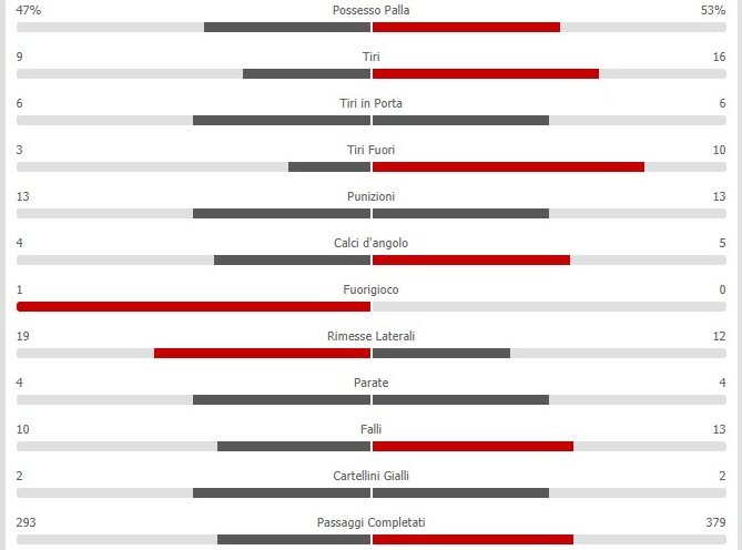Dieci tiri fuori e sei in porta, contro i sei in porta e i tre fuori del Parma.