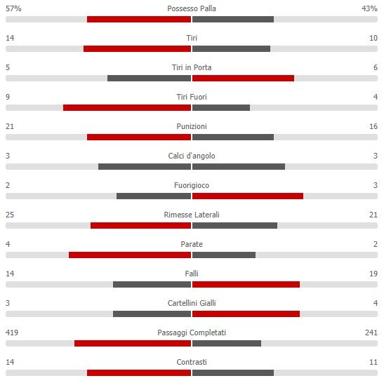 Gazzola 5 mezzo: inizio titubante e in difficoltà nel uno contro uno; migliora col passare dei minuti , ma poi va fuori misura in qualche appoggio e viene sostituito per stanchezza. Dal 78° Bastoni S.V. .